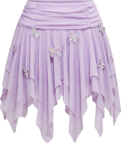 Verdusa Women's 3D Butterfly Ruffle Skirt Ruched Sheer Mesh Asymmetrical Y2K Mini Skirts
