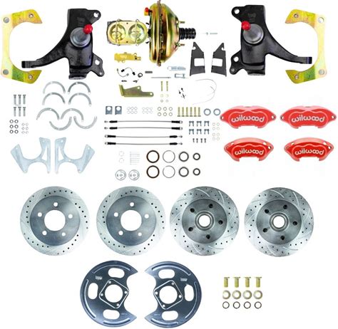 Right Stuff THB7355DZP 1973-1987 C10 Truck 2 in. Drop Hydraulic Assist 4-Wheel Disc Kit Red Wilwood Calipers