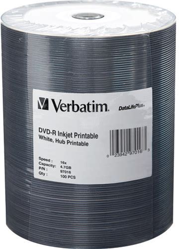 Verbatim DVD-R Blank Discs AZO Dye 4.7GB 16X Recordable Disc - 100 Pack Spindle Frustration Free Packaging