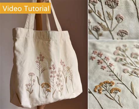 Large Capacity Tote Embroidery Kit, Off-White Canvas Shoulder Womens Bag, Beginner Flower Hand Embroidery Kit With Video tutorial-34x51cm