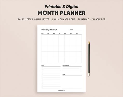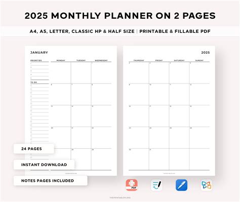 Monthly Planner Printable | Free 2025 Monthly Calendars
