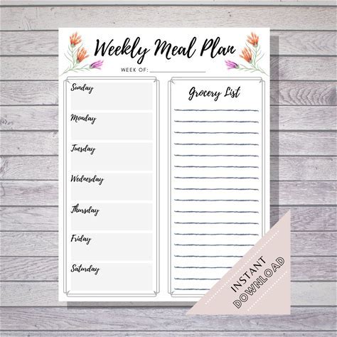 Printable Weekly Meal Plan, Digital File To Organize Your Weekly Menus
