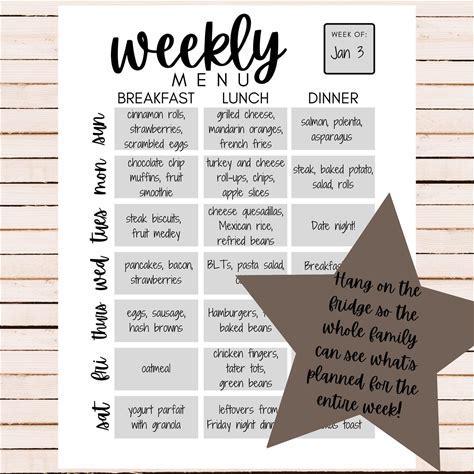 Printable Weekly Menu Template, Simple Daily Meal Planner, Breakf